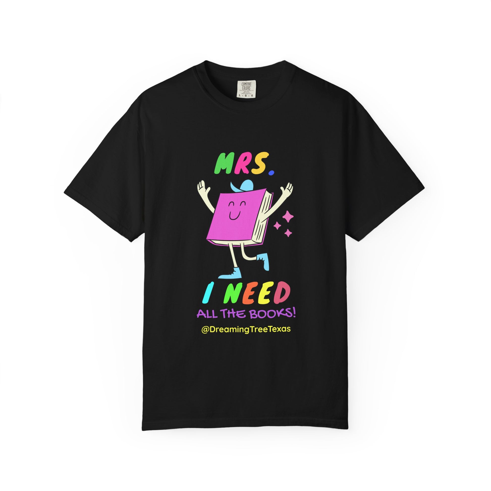 For the reader who can’t stop, won’t stop. Introducing our Mrs. I Need All the Books tee—a must-have for every book lover who’s always “just browsing” and somehow ends up with five more titles in their cart.